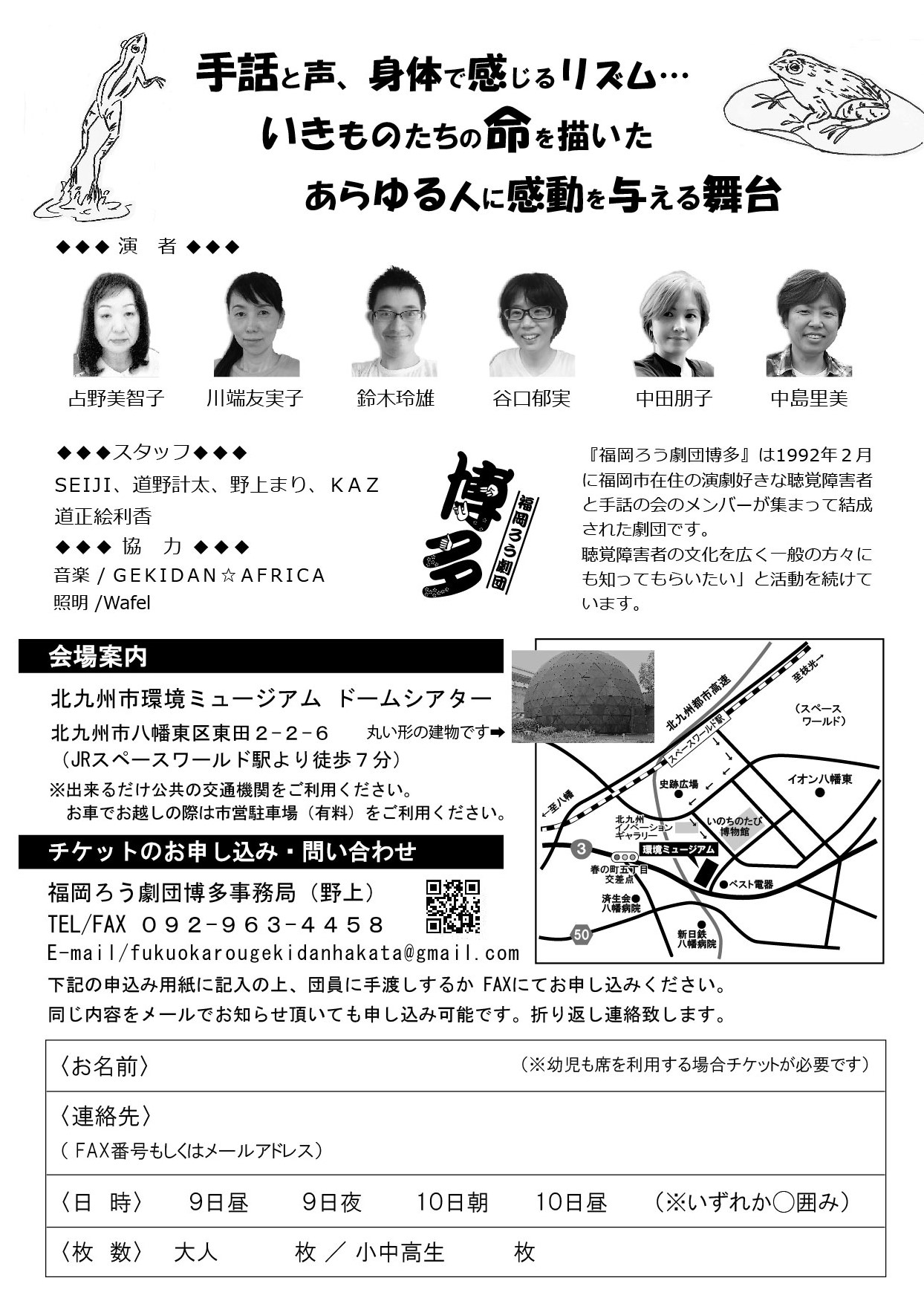 下記事項をご入力の上、fukuokarougekidanhakata@gmail.com